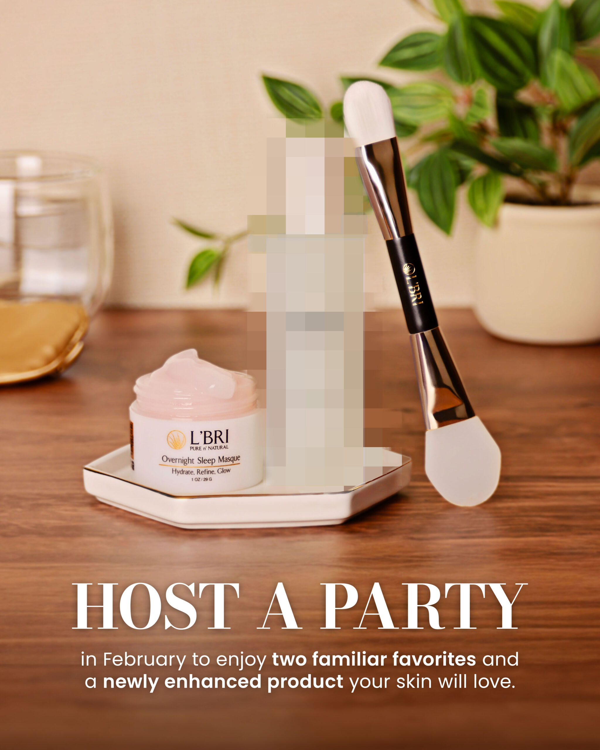 Host a qualified $300+ party with 3 new buying customers and you’ll earn our Enhanced Facial Masque AND Overnight Sleep Masque ($64 Retail Value).