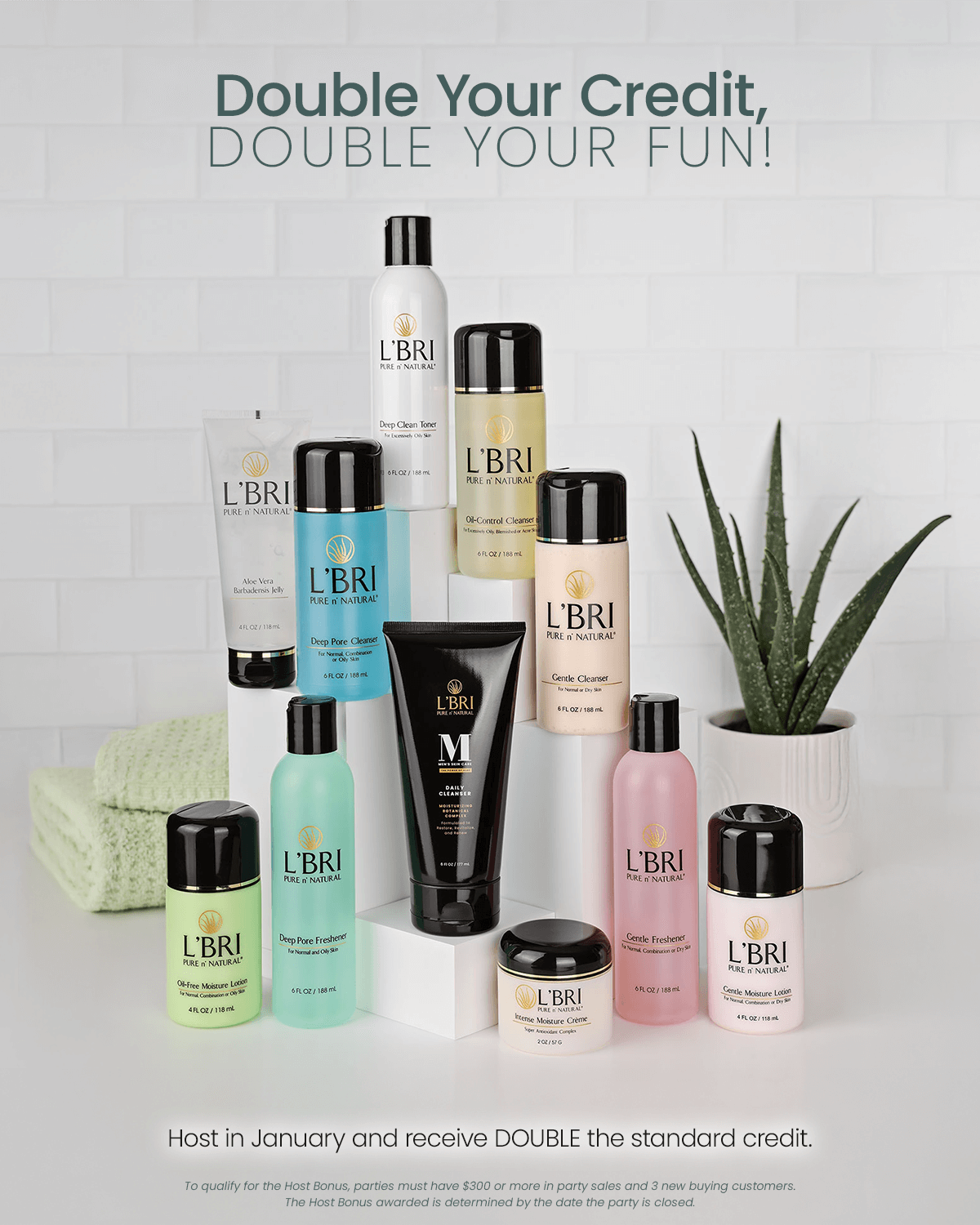 For this month only, when you host a $300+ L’BRI Show and welcome 3 new buying customers, you’ll receive DOUBLE Host Bonus Credit.